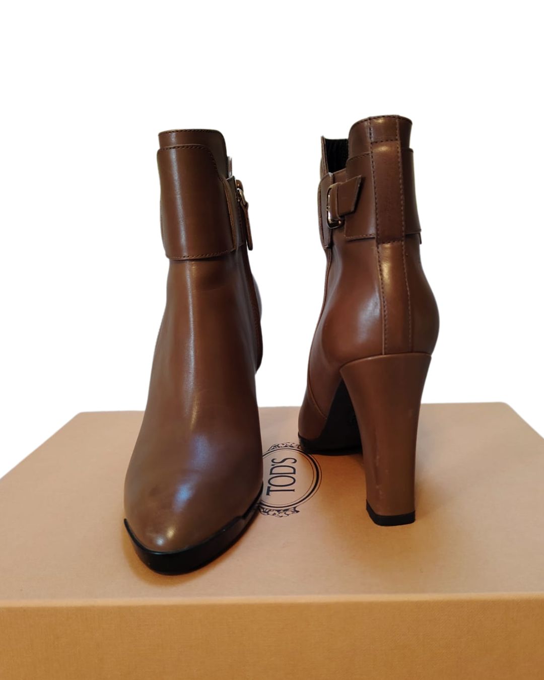 Tod’s kožne gležnjače, boja konjaka, br.37, peta 9 cm, nisu nošene, original kutija